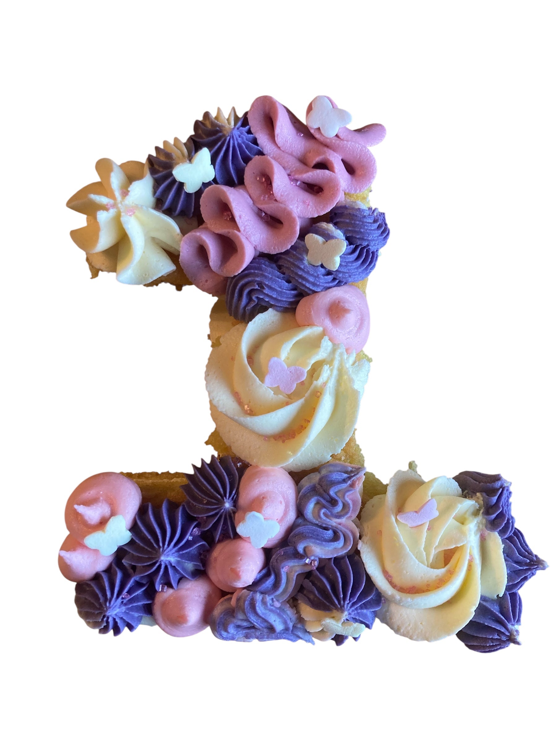 Het cijfer wordt gemaakt van zachte vanille cake, afwerking naar eigen keuze.|