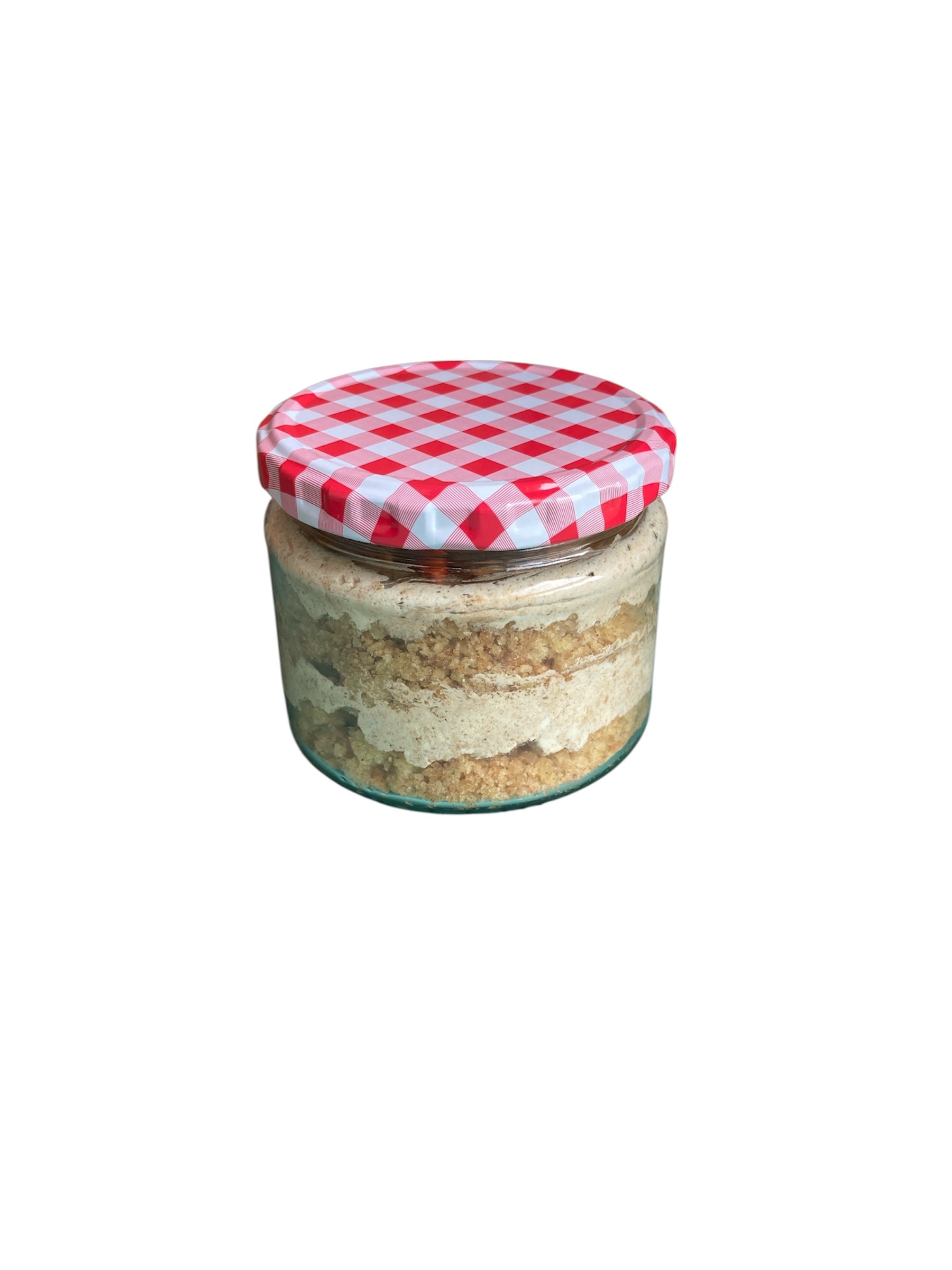 - Geleverd in een herbruikbare glazen pot (cake in a jar)